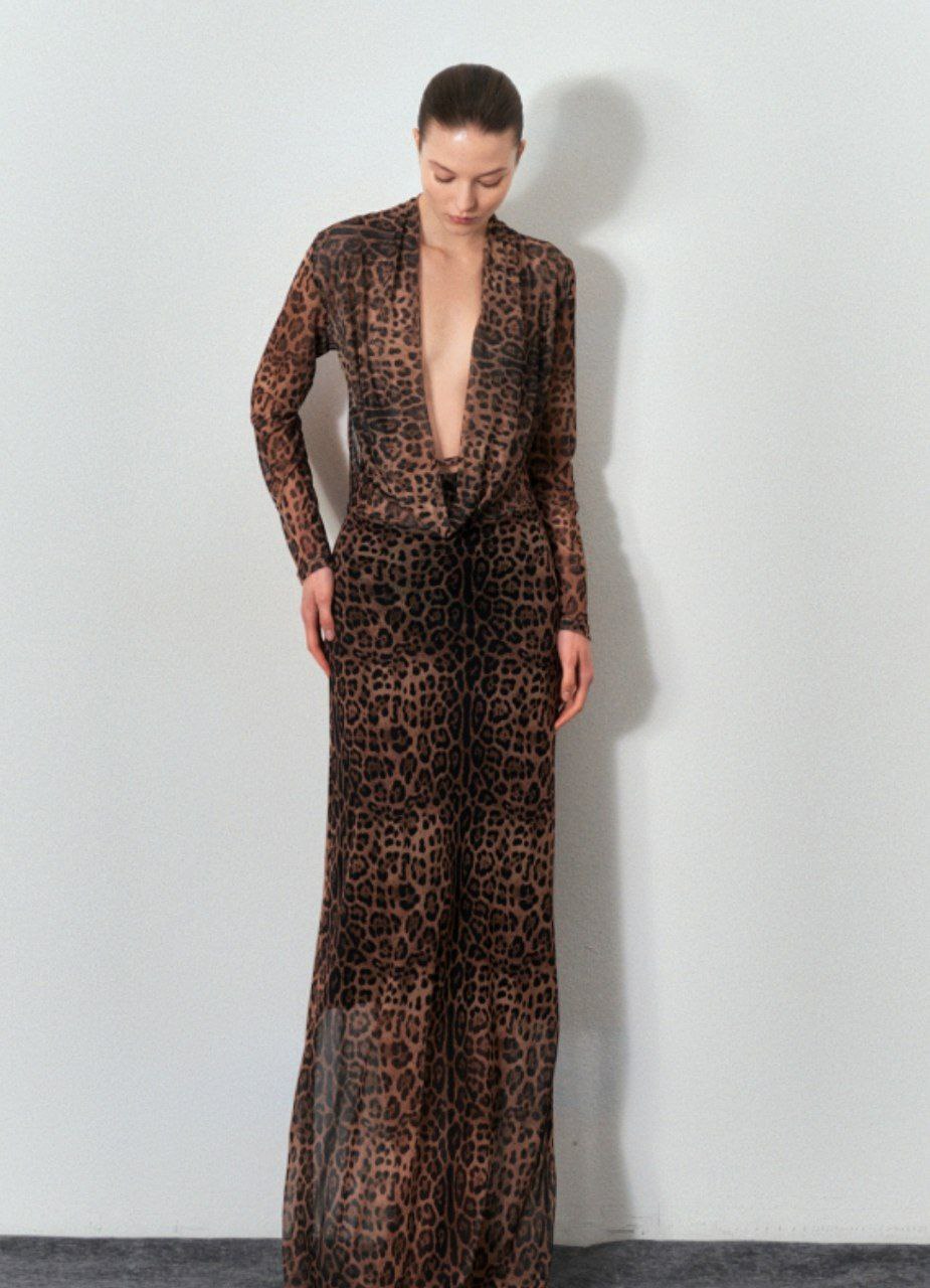 Elegante completo in pizzo, perfetto per occasioni speciali. Disponibile in due colori, marrone e panna,...