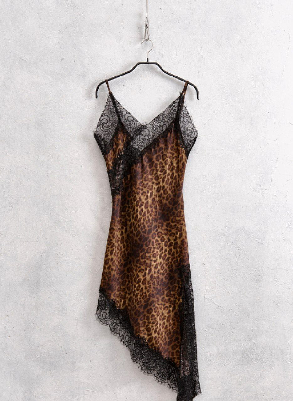 Elegante abito Motel in tonalità panna e nero, caratterizzato da dettagli in pizzo che ne...