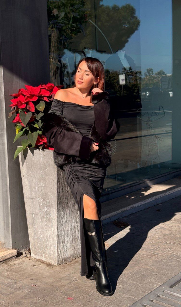 Elegante body nero con maniche lunghe, perfetto per ogni occasione. Realizzato in un tessuto morbido...