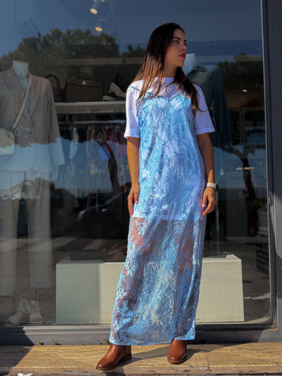 Abito Sovrapposto Azzurro in Pizzo Kostumn1