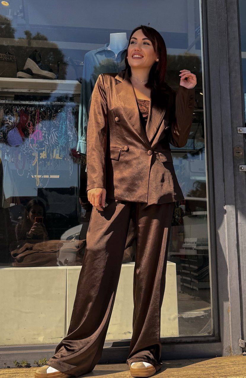 Elegante tailleur Motel in un sofisticato colore moro, perfetto per ogni occasione. Questo completo è...