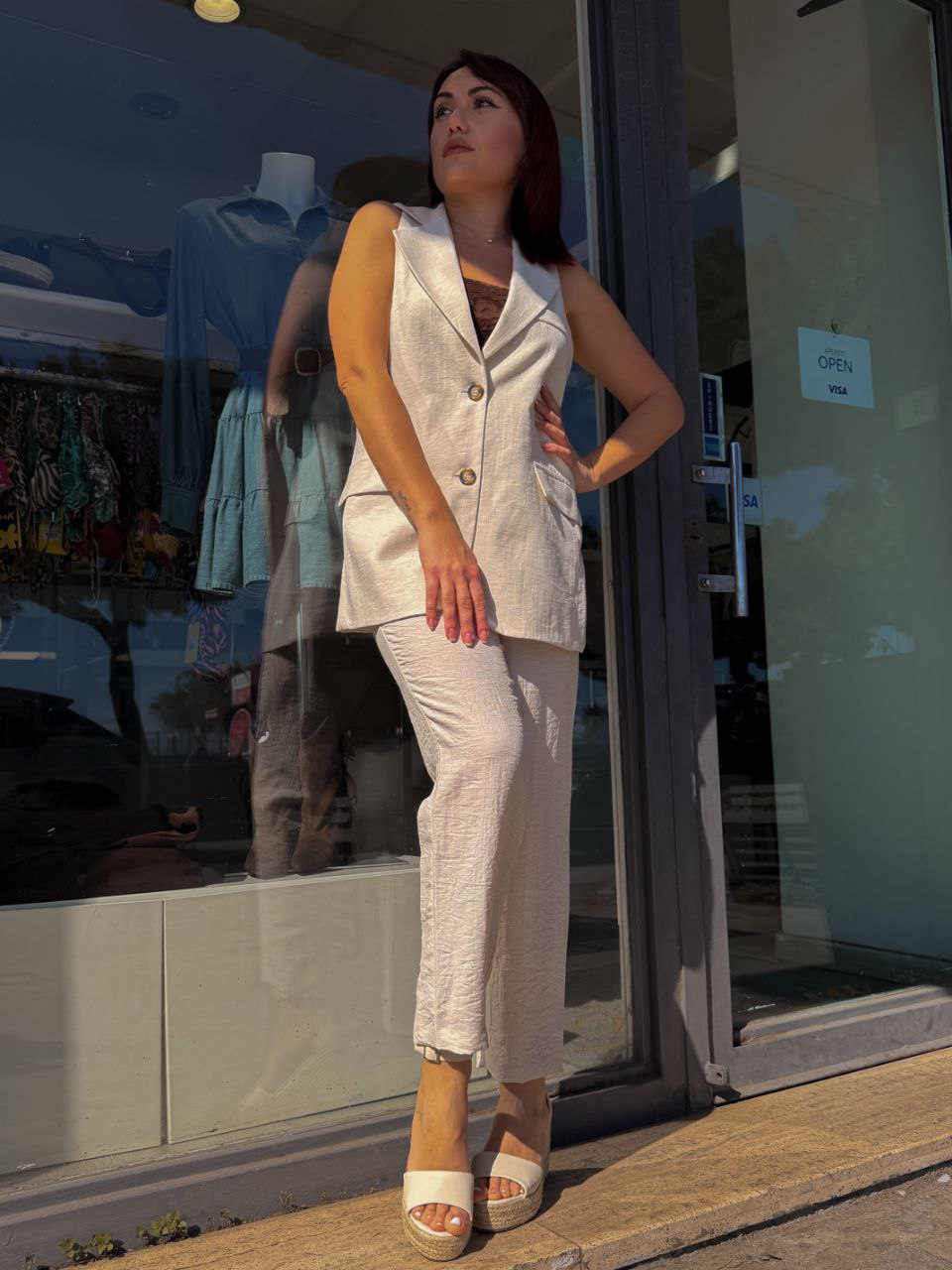Completo Vicolo: Gilet e Pantalone in Denim Beige