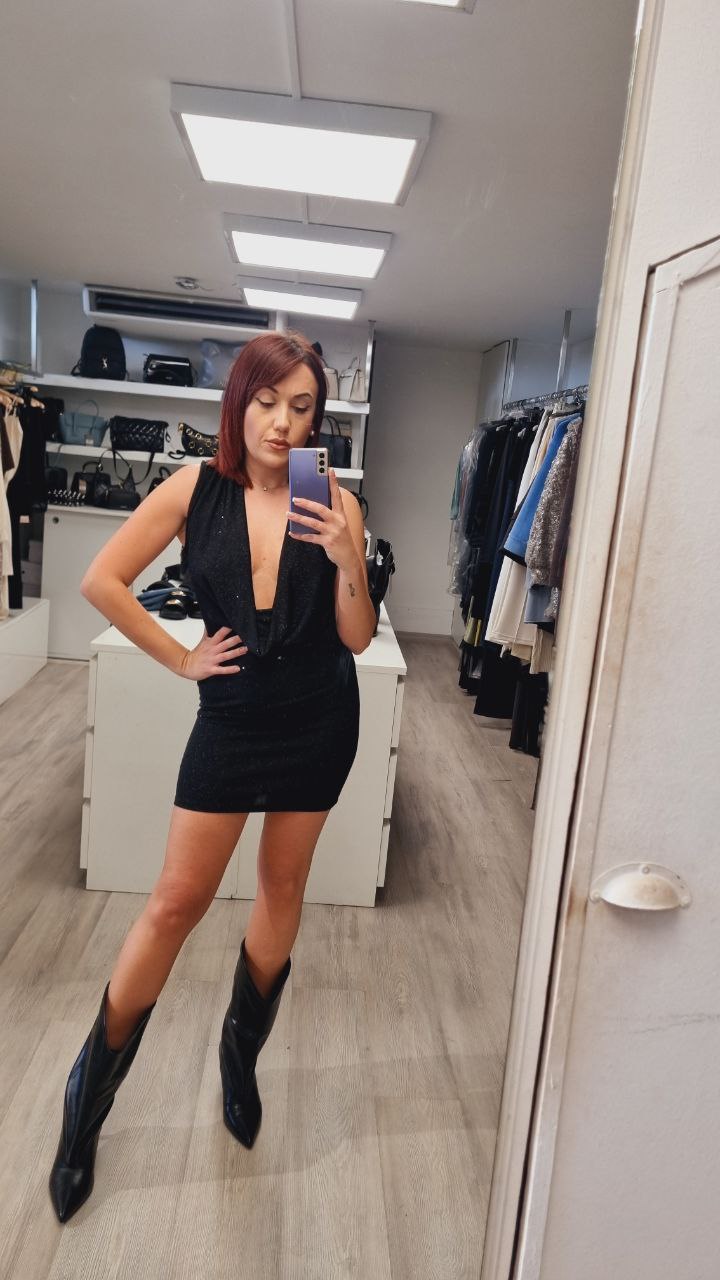 Abito Kostumn1 in Lurex Nero con Scollo Profondo