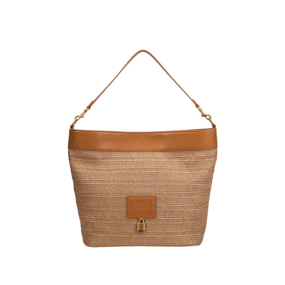 Secchiello in rafia con logo GIO CELLINI embossed su placca Chiusura con cerniera Manico singolo...