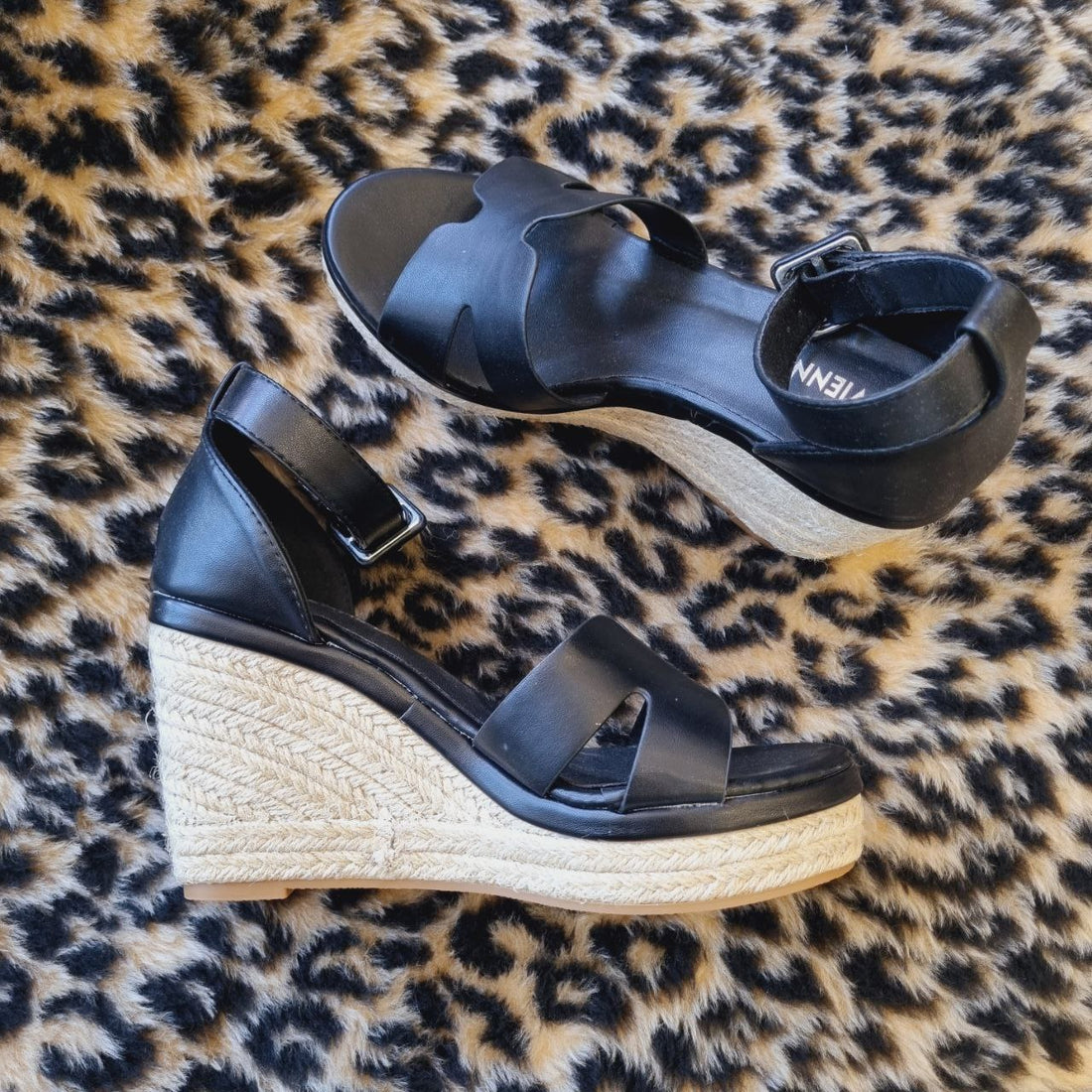 Elegante zeppa in corda nera, perfetta per ogni occasione. Con un design moderno e confortevole,...