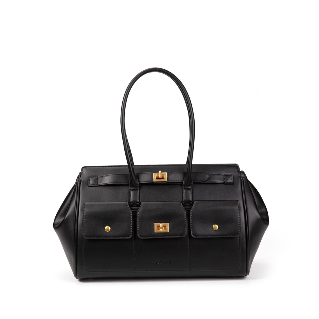 Borsa in ecopelle con logo embossed finitura dorataChiusura con perno girevoleManico singoloDue scomparti interniTre tasche...