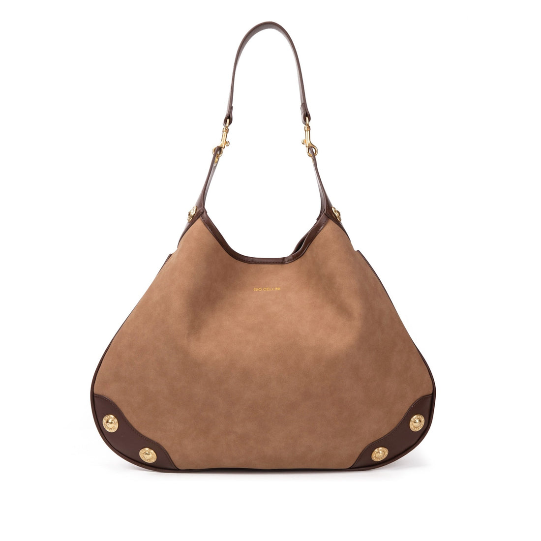 Hobo bag in ecopelle con logo lettering finitura dorataChiusura con cernieraBorchie decorative finitura dorataManico singolo...