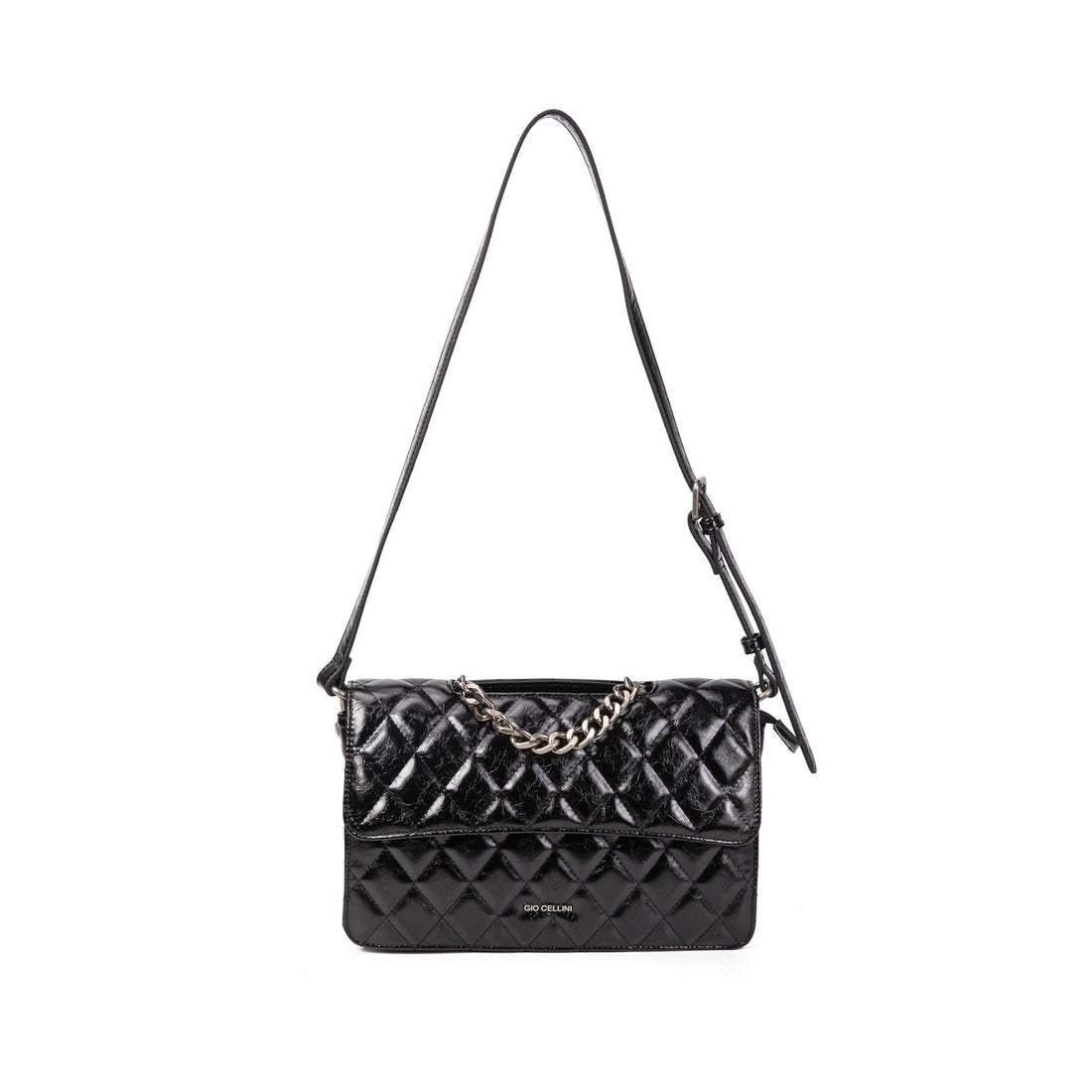Borsa a spalla tre scomparti in ecopelle effetto vernice con logo lettering finitura argentataChiusura con...