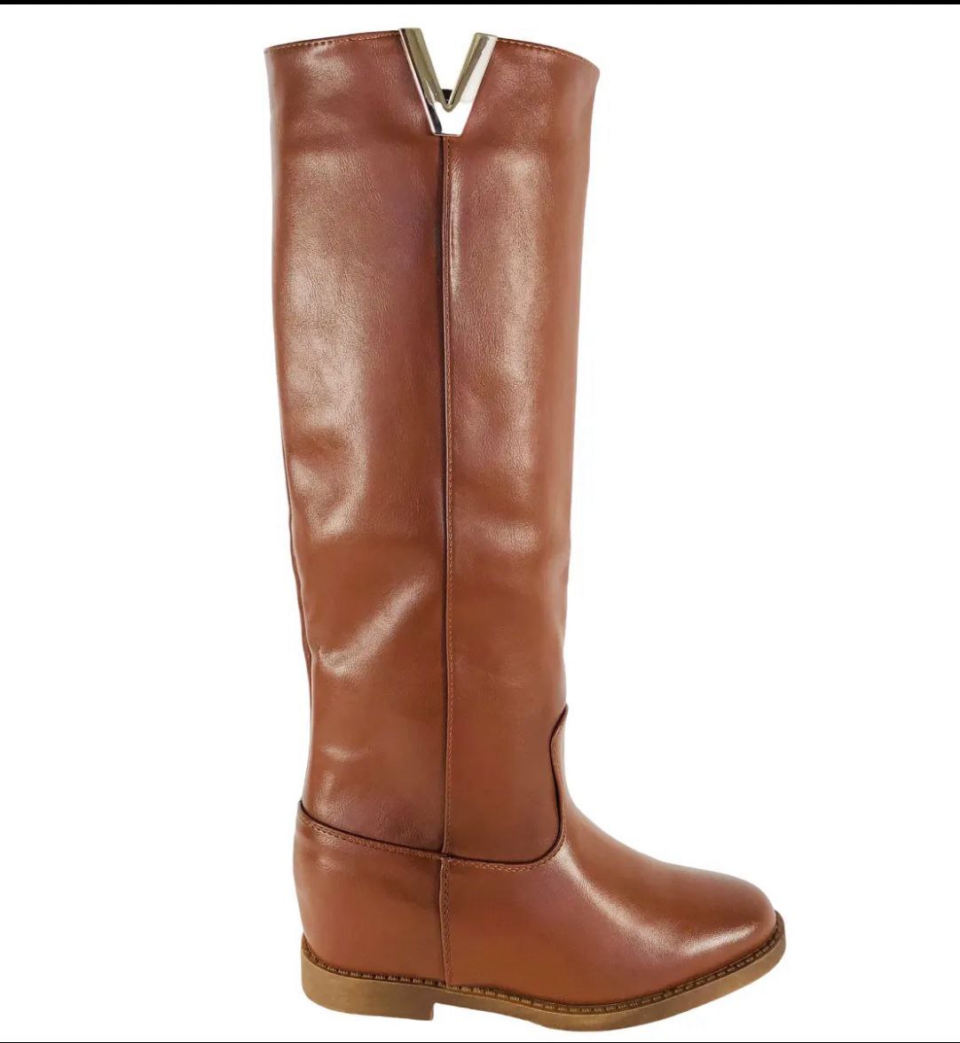 Stivale Ecopelle Colore Cammello con Dettaglio V