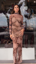 Abito Maculato con Maniche Lunghe e Scollo Alto