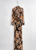 Elegante abito velato in tonalità marrone con delicati fiori beige. Perfetto per occasioni speciali, questo abito presenta un design sofisticato e una vestibilità comoda.