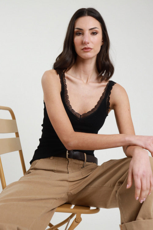 Canotta Elasticizzata con Pizzo sui Bordi. 70%vi 25%co 5%ea