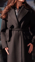 Cappotto Lungo Vicolo in Nero con Cintura