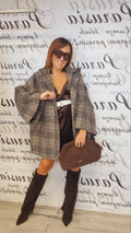 Elegante cappotto a quadri con cappuccio, perfetto per la stagione autunnale. Realizzato in tessuto morbido e caldo, offre comfort e stile. Disponibile in diverse misure per adattarsi a ogni silhouette.