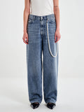 Jeans baggy blu chiaro con risvolto e dettaglio catena