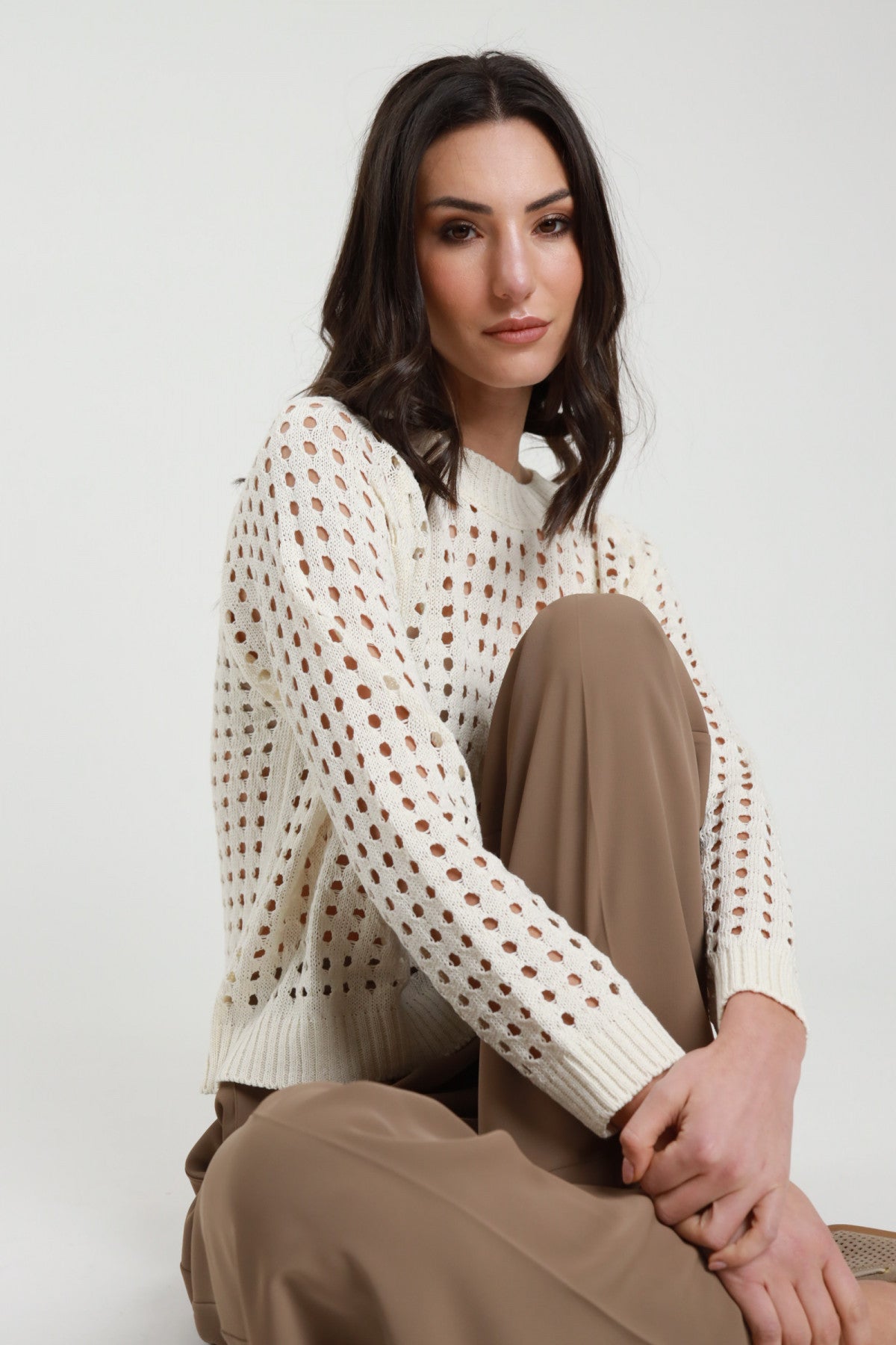 Maglia Corta Girocollo Traforata. 50%co 50%pc