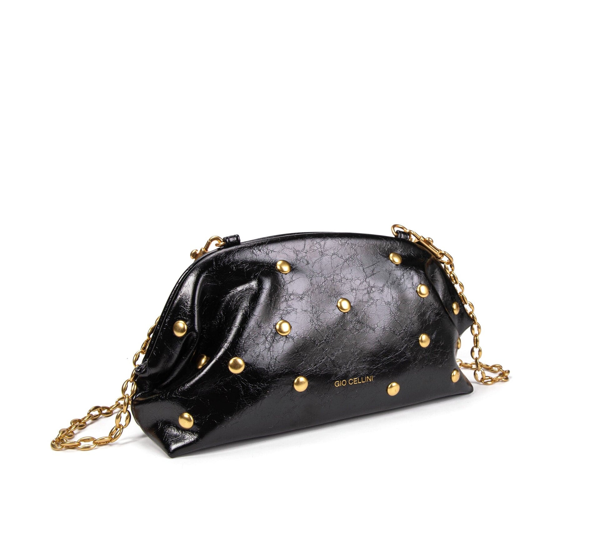 Mini bag in ecopelle effetto vintage con logo embossed finitura dorata