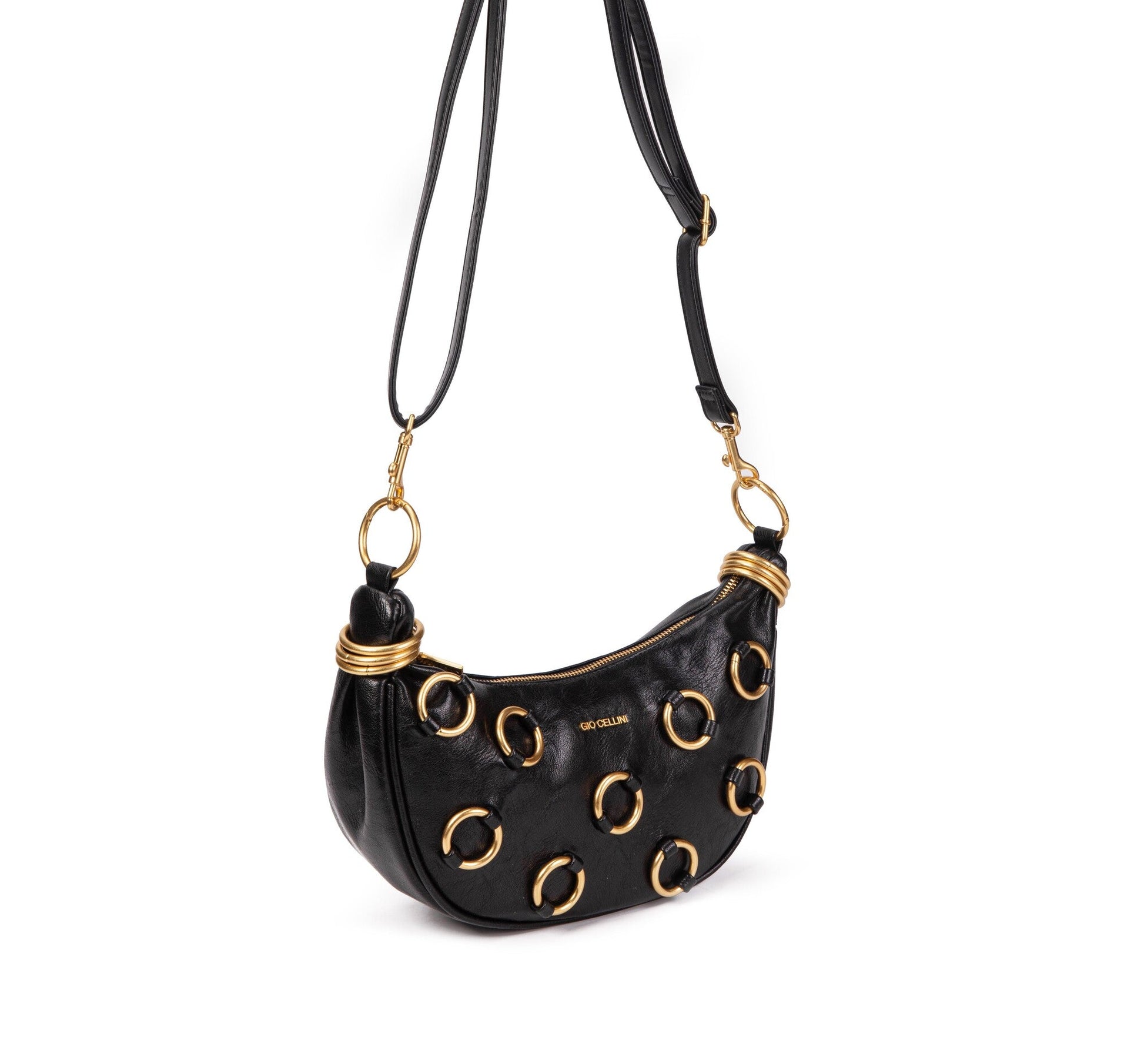 Mini hobo bag in ecopelle con logo lettering finitura dorata