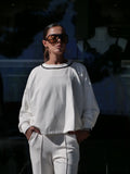 Pantalone elegante in colore panna, ideale per un look raffinato. Comodo e versatile, si abbina facilmente a diverse felpe e top.