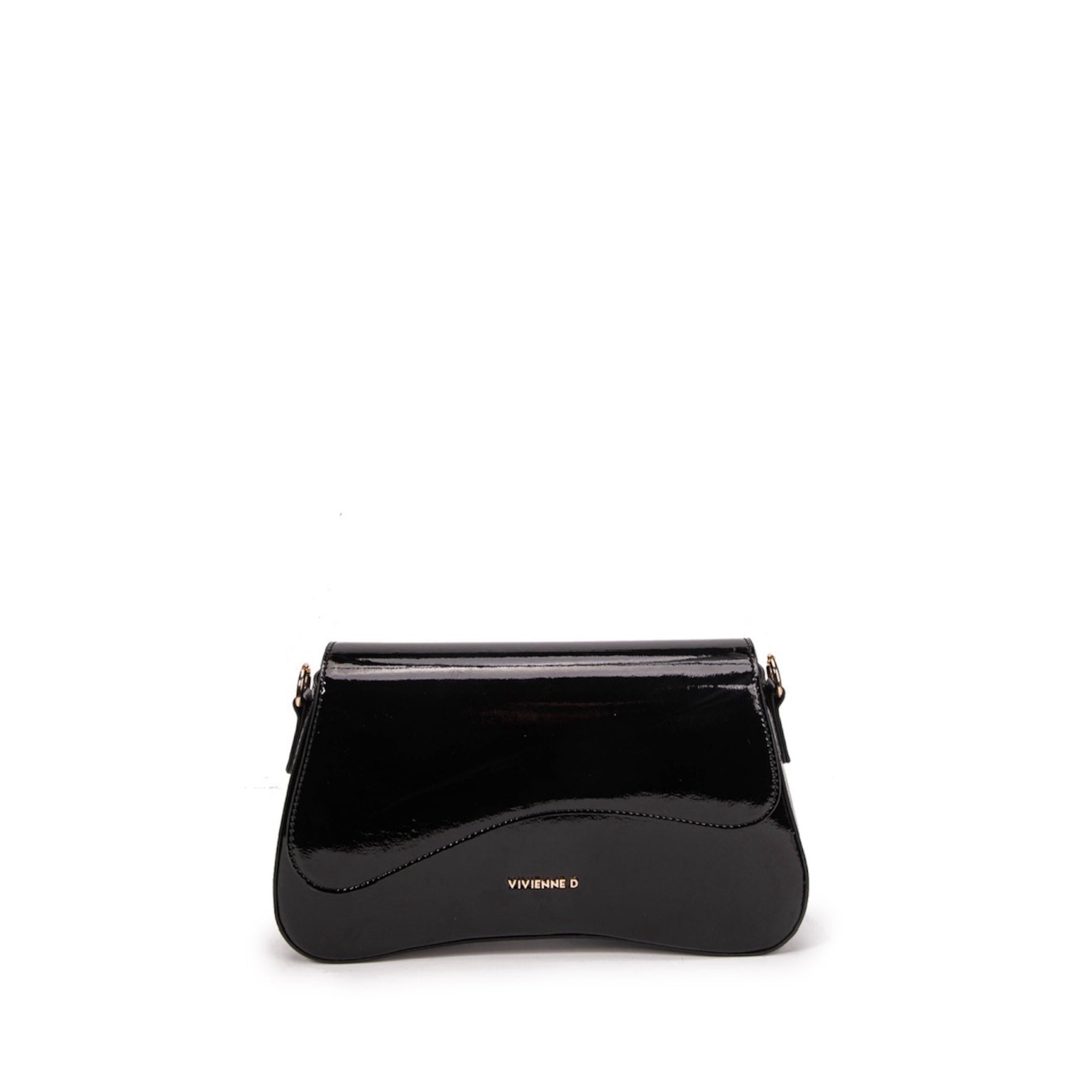 Pochette in vernice con logo VIVIENNE D finitura dorata