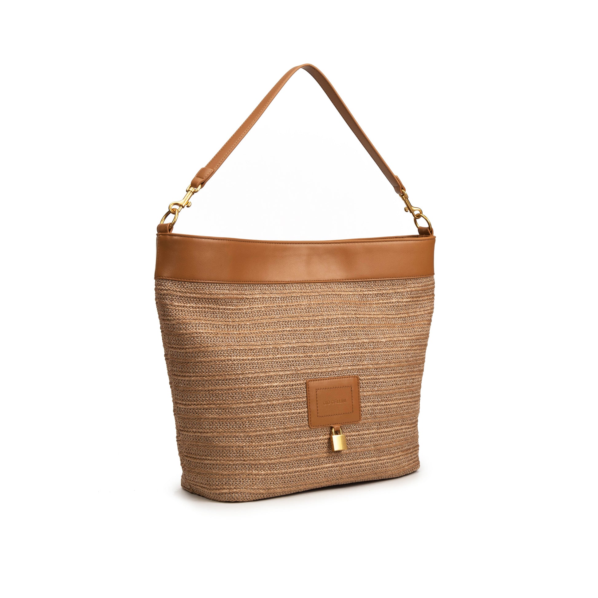 Secchiello in rafia con logo GIO CELLINI embossed su placca