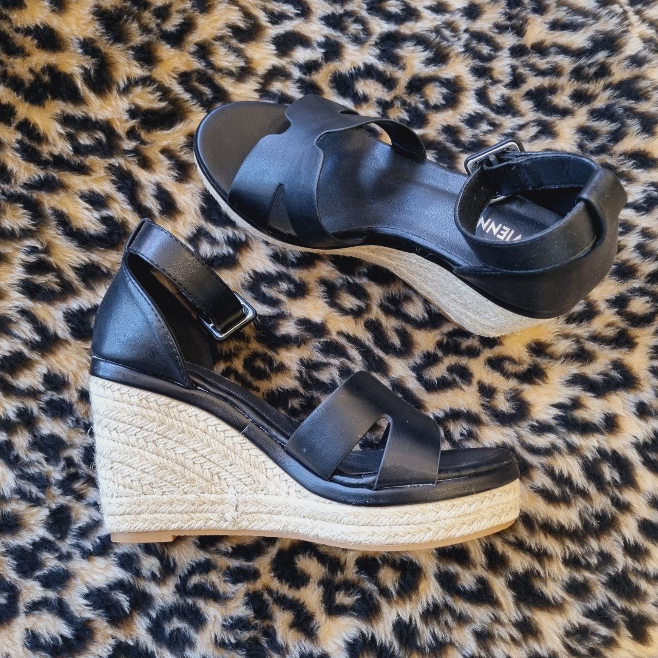 Elegante zeppa in corda nera, perfetta per ogni occasione. Con un design moderno e confortevole, queste scarpe offrono stile e praticità. Ideali per l'estate, si abbinano facilmente a vari outfit.